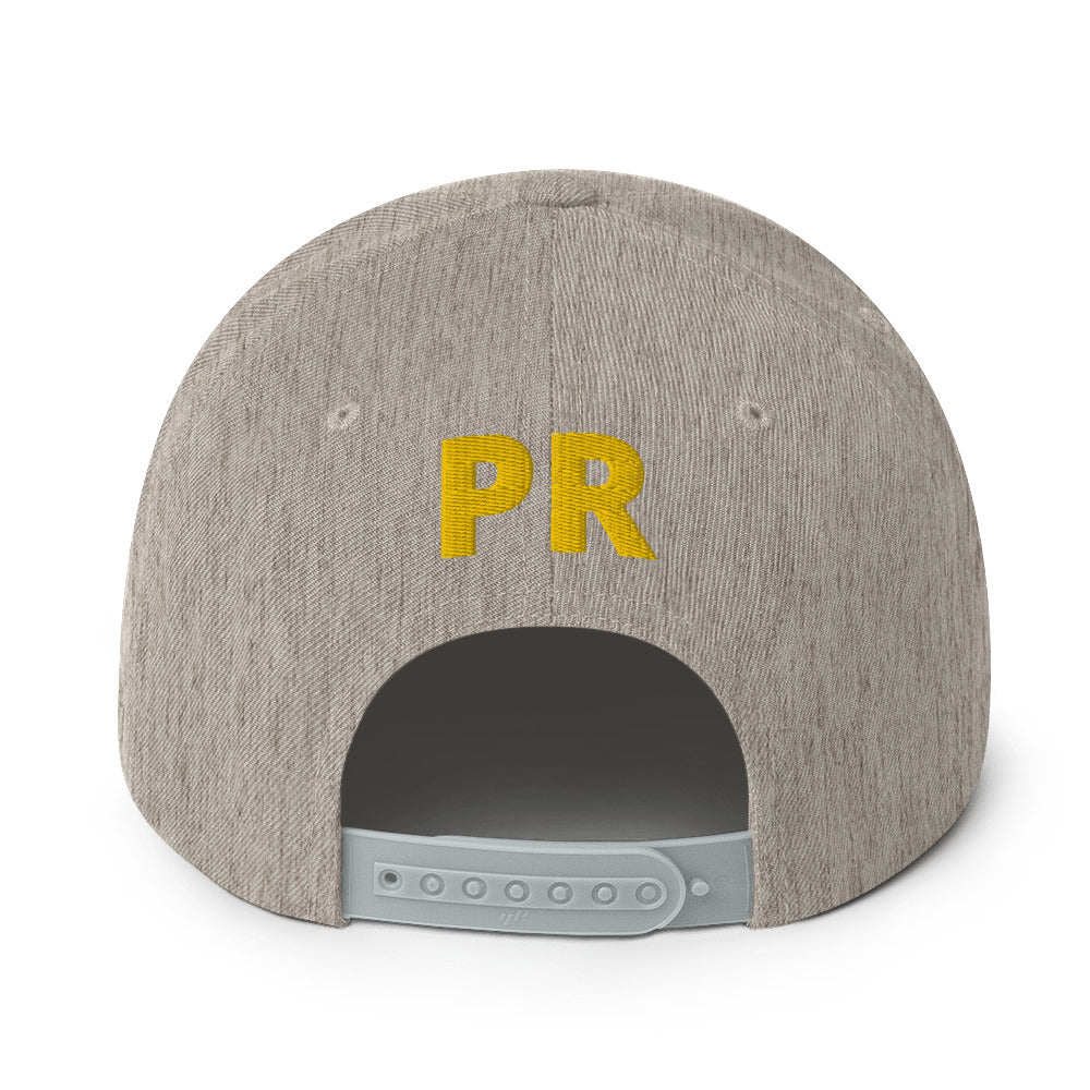 This hat is structured with a classic fit, flat brim, and full buckram. The adjustable snap closure makes it a comfortable, one-size-fits-most hat.