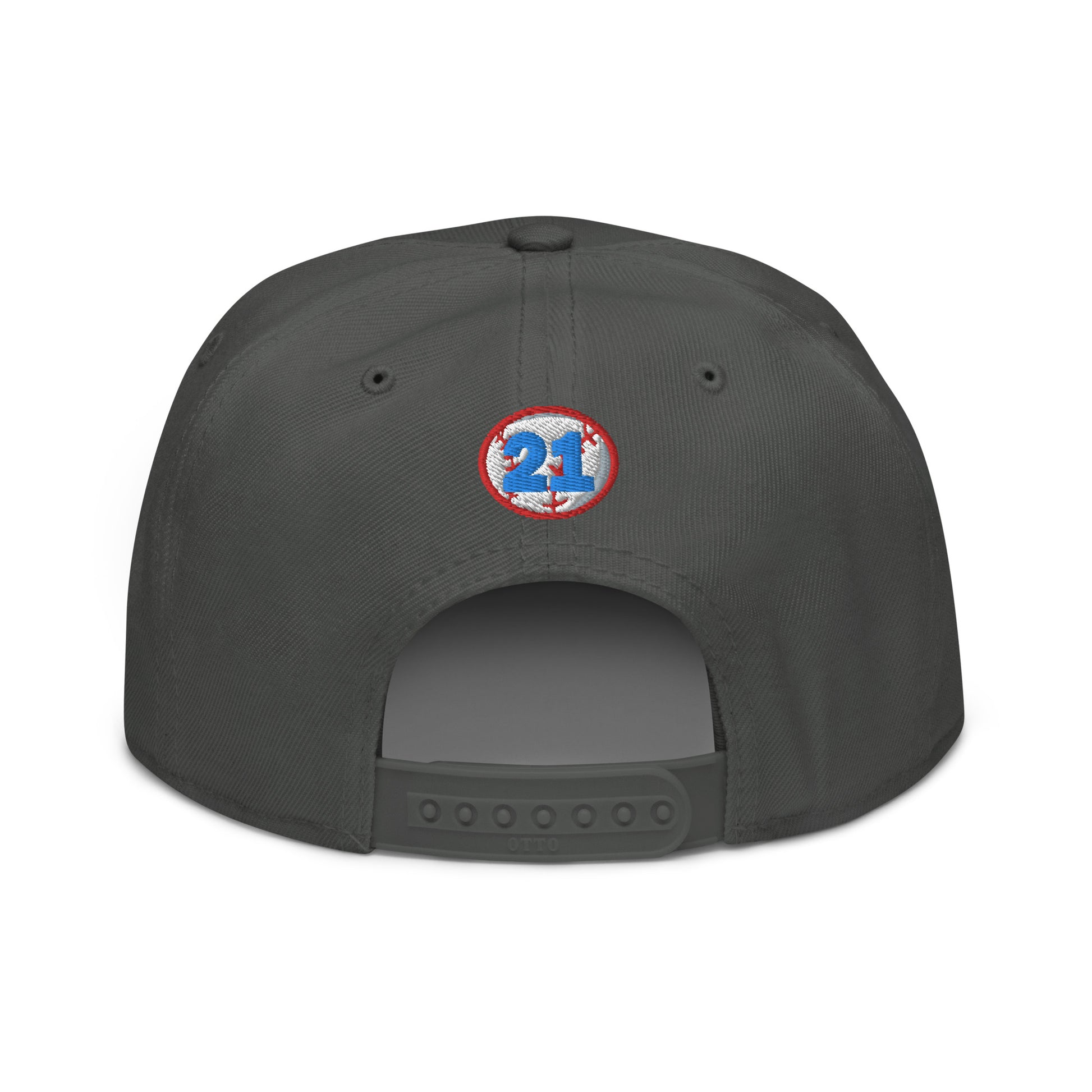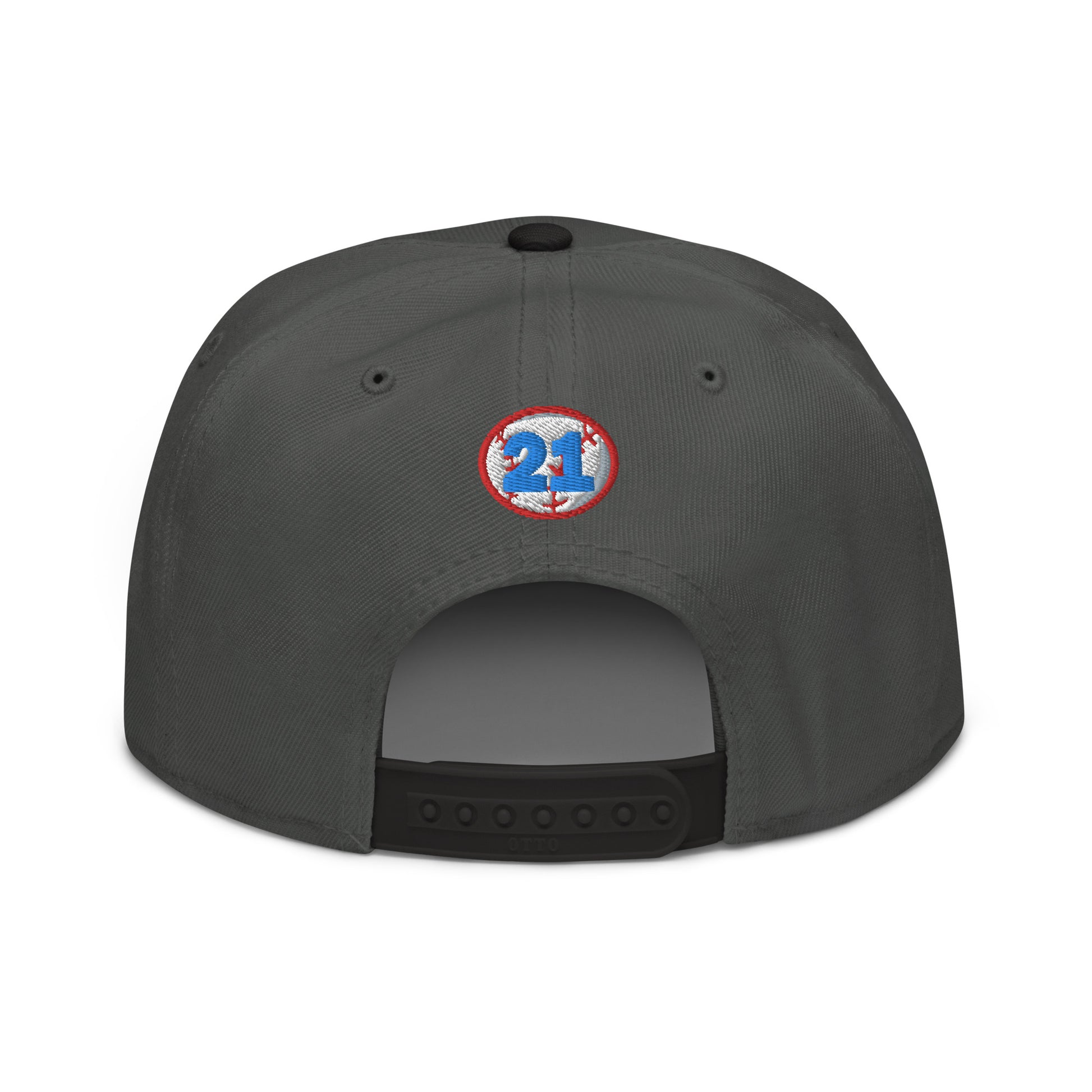This is the snapback of your dreams! It's structured and high-profile, with a flat visor and a subtle grey under visor.
